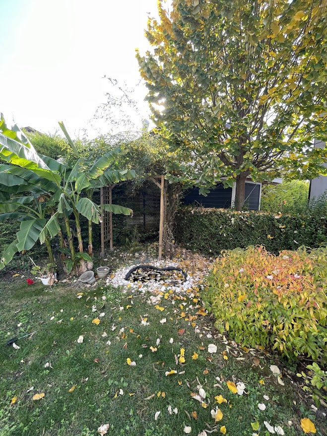 A gondozott, dísznövényekkel és kerti tóval körbevett kert nyugodt pihenést biztosít az egész családnak.
