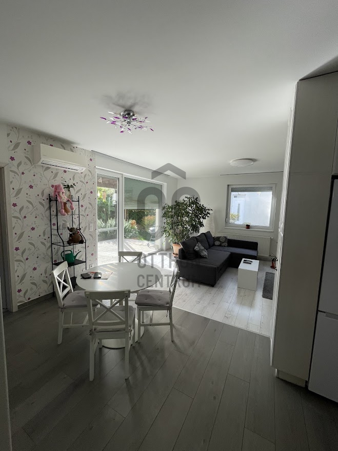Az ingatlan a város egyik ötlakásos, kerítéssel körbevett lakóparkjának belső részén helyezkedik el – így teljesen védett, kíváncsi szemek elől elzárt, mégis mindenhez közel.