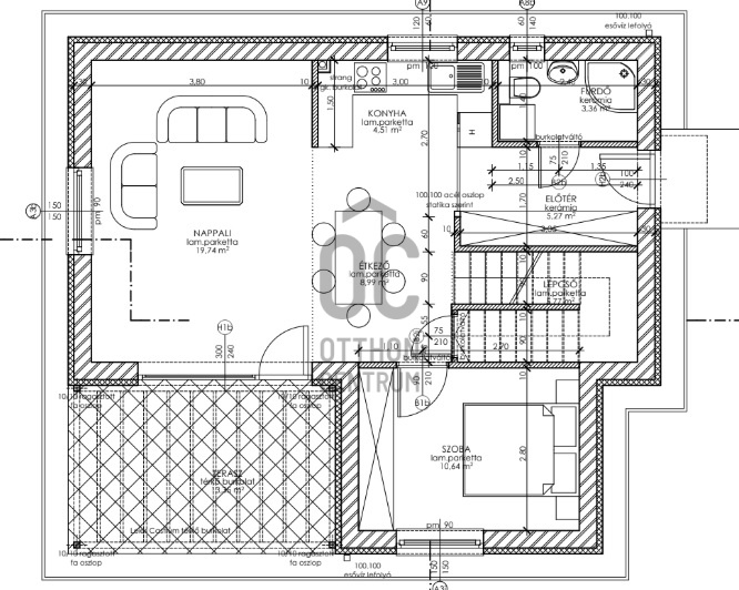 Összes hasznos terület: 109,65 m² + 13,35 m² terasz