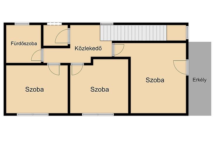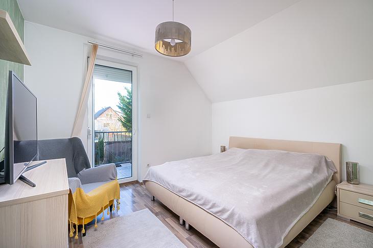 A 2 lakásos társasház 2012-ben épült, a lakás elrendezése pedig jelenleg amerikai konyhás nappaliból, 3 szobából – az egyik szoba jelenleg gardróbszobaként funkcionál - 2 fürdőszobából, egy külön wc helyiségből és spejzből épül fel.