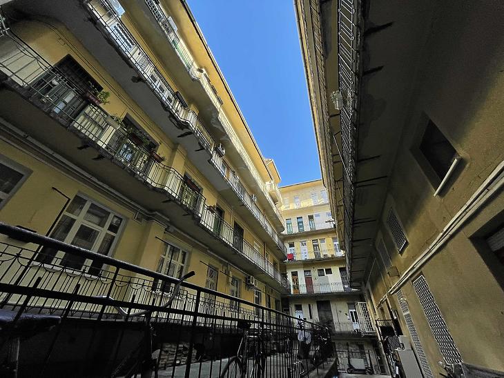 Az ablak a csendes belső udvarra néz, így kellemes, nyugodt otthon alakítható ki belőle.