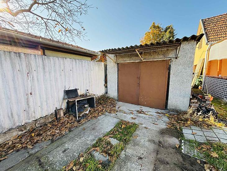 A házrészhez tartozik egy 20 nm-es nagy fedett terasz valamit egy szerelő aknával ellátott garázs.