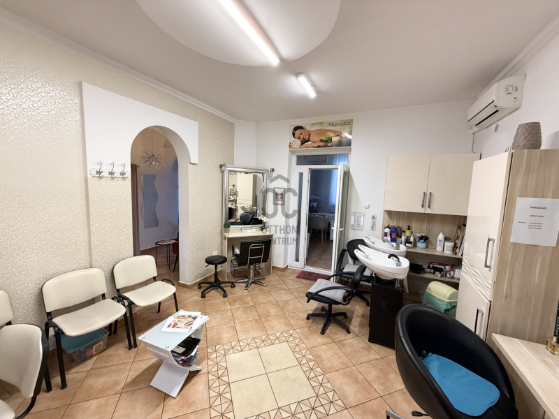 •Az épület egyik részében 120 m²-es, működő szépségszalon található