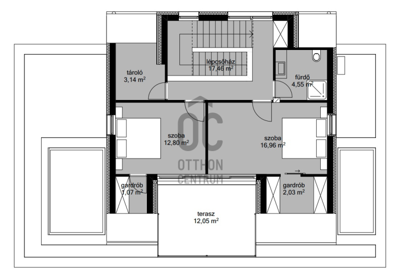 A hálószobák intimek, jól elkülönülnek a közösségi zónáktól, a fürdők modern, mégis időtálló burkolatokkal készültek.