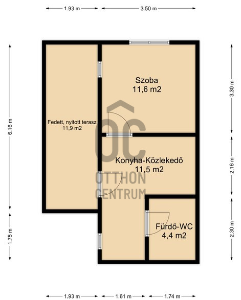 - A házban 1 szoba, konyha, fürdőszoba, közlekedő található.