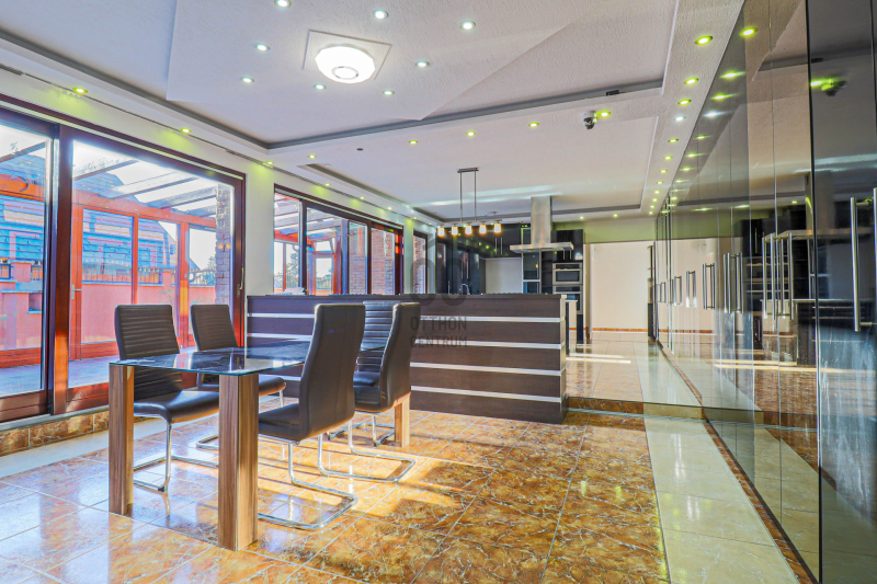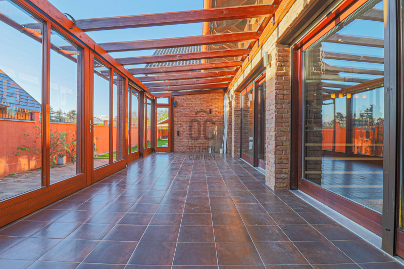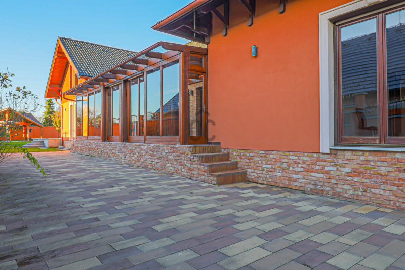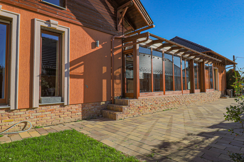 Tágas, 50 m²-es amerikai konyhás nappali hatalmas üvegfelületekkel és 32 m2- es fedett télikert kapcsolattal