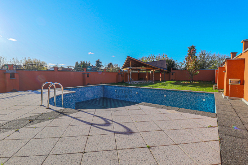 A gondozott udvarban medence, kerti kiülő és zöldövezeti nyugalom várja új tulajdonosát.