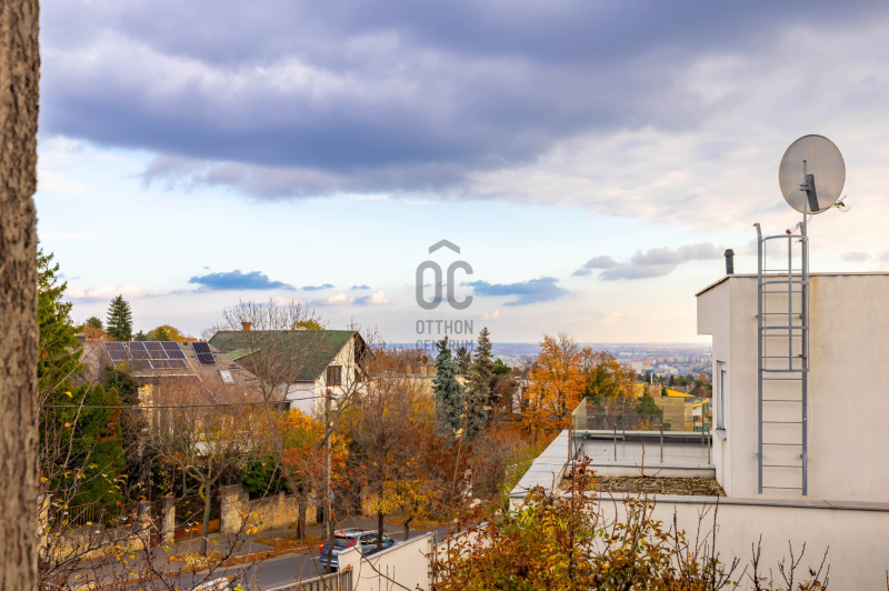 Az épület nagyon világos, körbe napozott az emeletről pedig városi panorámában gyönyörködhetünk. A két szint két külön bejáratú jelenleg, két külön otthonként funkcionált.