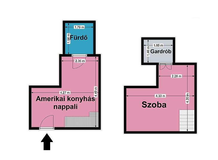 Ez az udvari nézetű, 18 nm-es alapterületű lakás álló galériával 35 nm-re bővíthető, így a tér maximálisan kihasználható. A két lakással együtt a teljes kihasználható terület 94 nm, ami rendkívül sokoldalú lehetőségeket kínál. A lakás modern és kényelmes megoldásokkal rendelkezik, tökéletes választás akár első otthonnak, akár befektetési céllal.