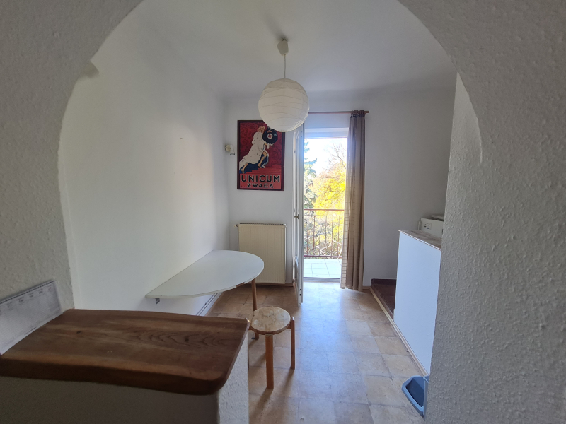 A konyhából egy szép napos, erkélyes szobát lehet csinálni, a konyhát átrakni a szobába, a fürdőszoba falára, mert ott a víz. A szoba szép nagy, erkélyes, nagyon szép amerikai konyhás nappali lehet belőle.