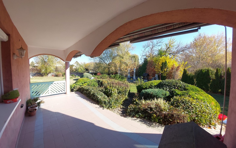 Füvesített, gondozott fákkal, cserjékkel, tavacskával. A locsolás fúrt kútról lehetséges. A kerti sütögető, kis játszótér, vízforgatóval ellátott medence és a körülötte lévő pihenő jó helyszíne lehet a kikapcsolódásnak!