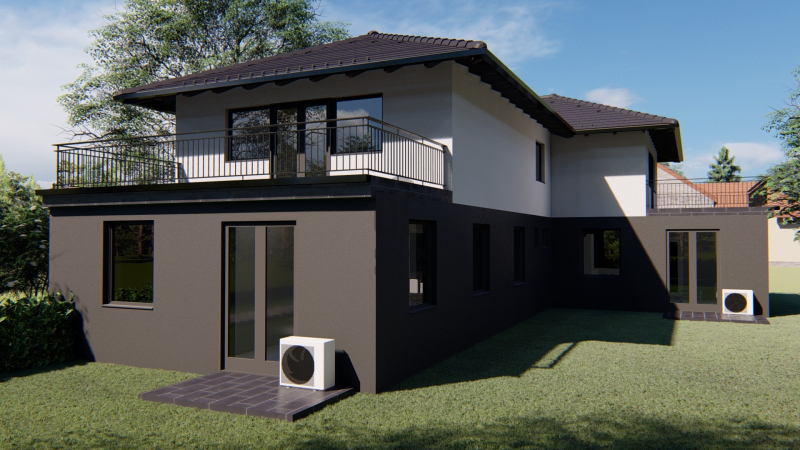 - fűtés: elektromos hőszivattyú + padlófűtés