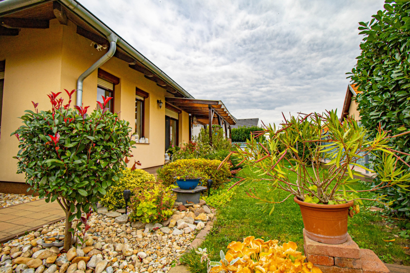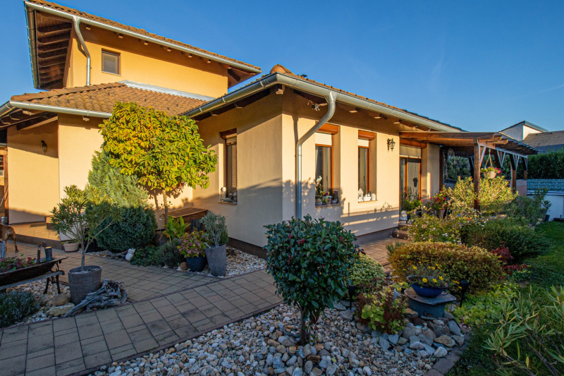 Soprontól mindössze néhány kilométerre az Alpok lankáinál kerül eladásra egy mediterrán stílusú családi ház.