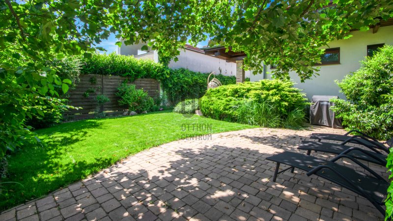 •Földszint (90 nm): tágas 30 nm-es nappali, 20 nm-es konyha-étkező a hozzátartozó kamrával, vendég WC, 17 nm-es hálószoba fürdőszobával és gardróbbal.