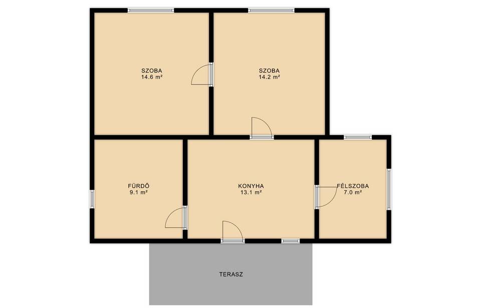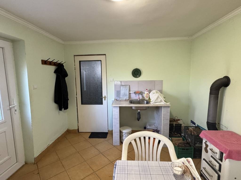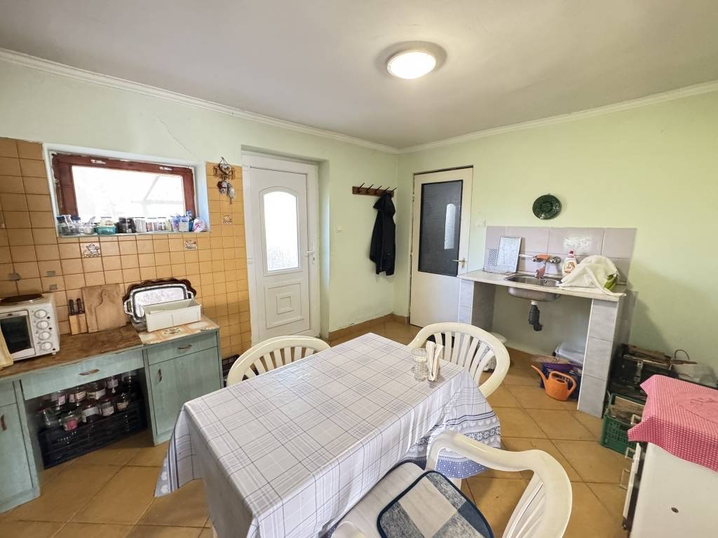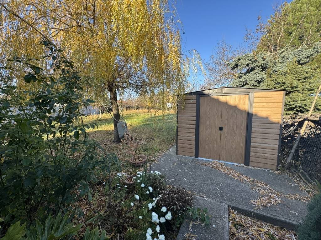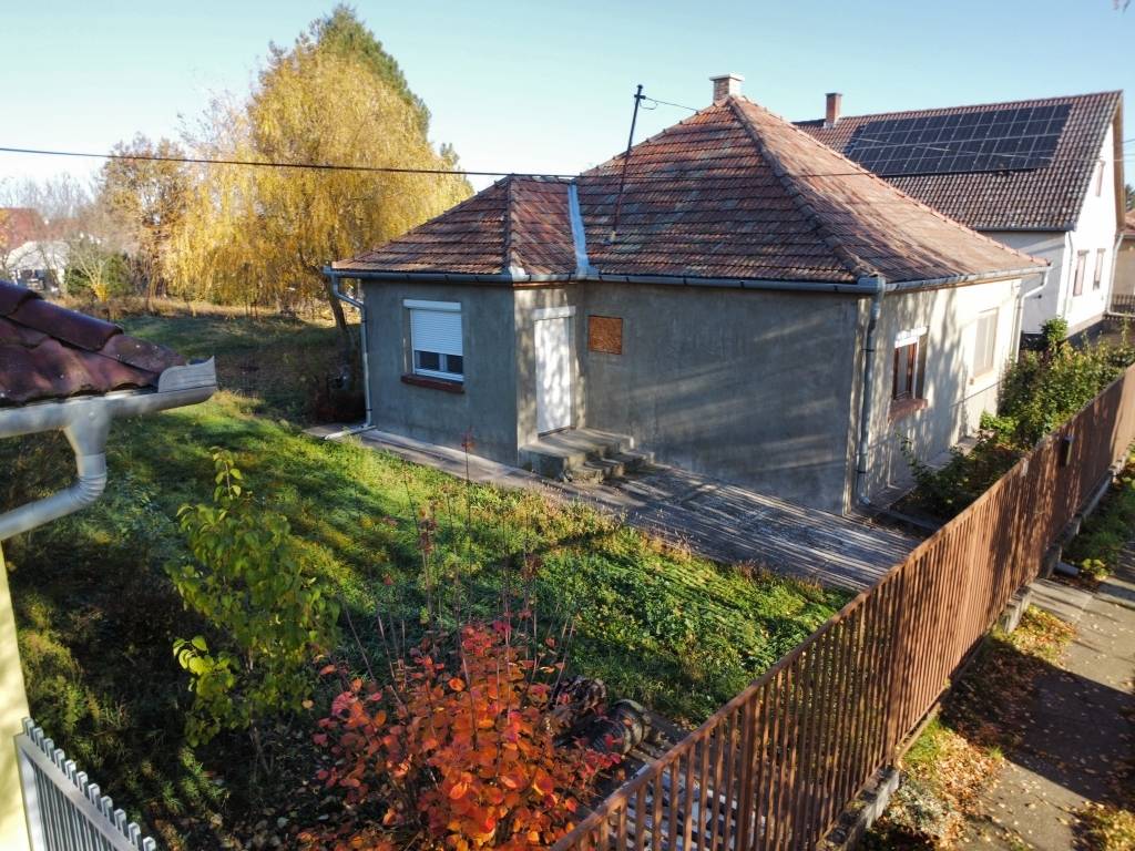 A teljes 1049 nm-es telek körbe van kerítve és van hátul egy tágas árnyékos terasz és egy tároló helyiség. Roszz állapotú melléképületektől mentes porta!