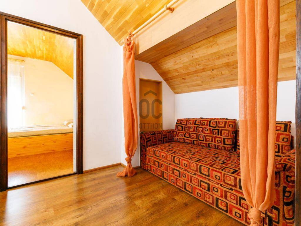 -A kétszintes ingatlan 80 m²-es, 2 szoba és 2 félszobával rendelkezik. Az 575 m²-es telek kellő teret nyújt a család számára, ugyanakkor a város és Siófok is könnyen megközelíthető, elérhető.