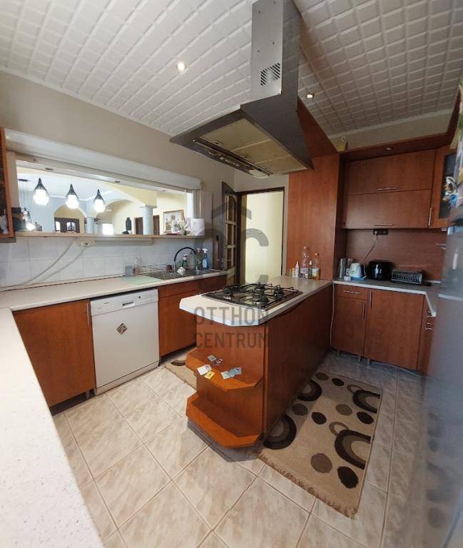 A konyha -étkező kínálópulttal elválasztott, innen a fedett teraszra is kiléphetünk.