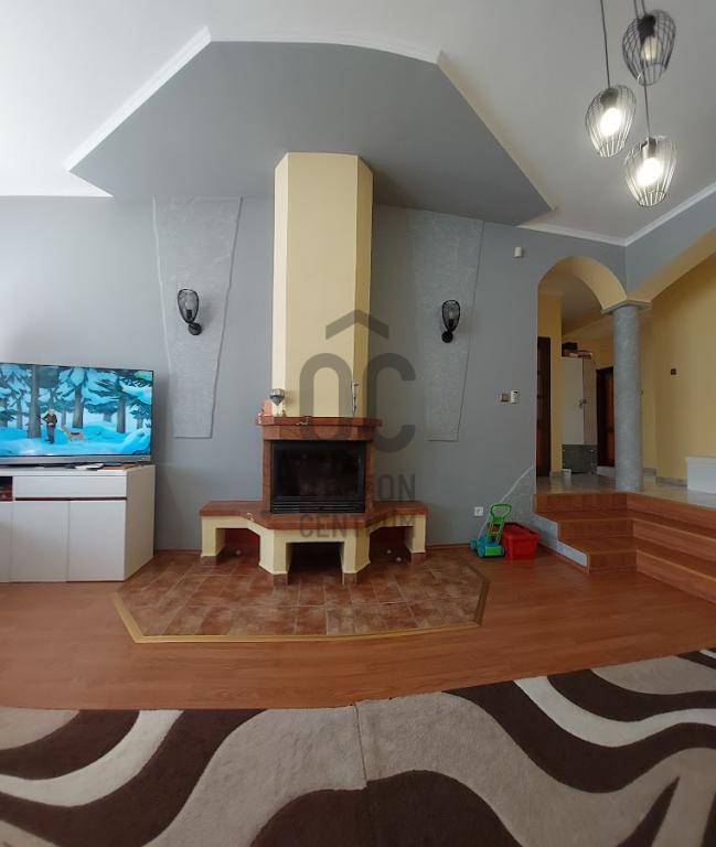 Az lőtér beépített szekrényekkel fogad. A ház központi tere a világos nappali- mely 3 lépcsőfokkal süllyesztett, télen szuper hangulatot, és meleget sugárzó kandallóval.