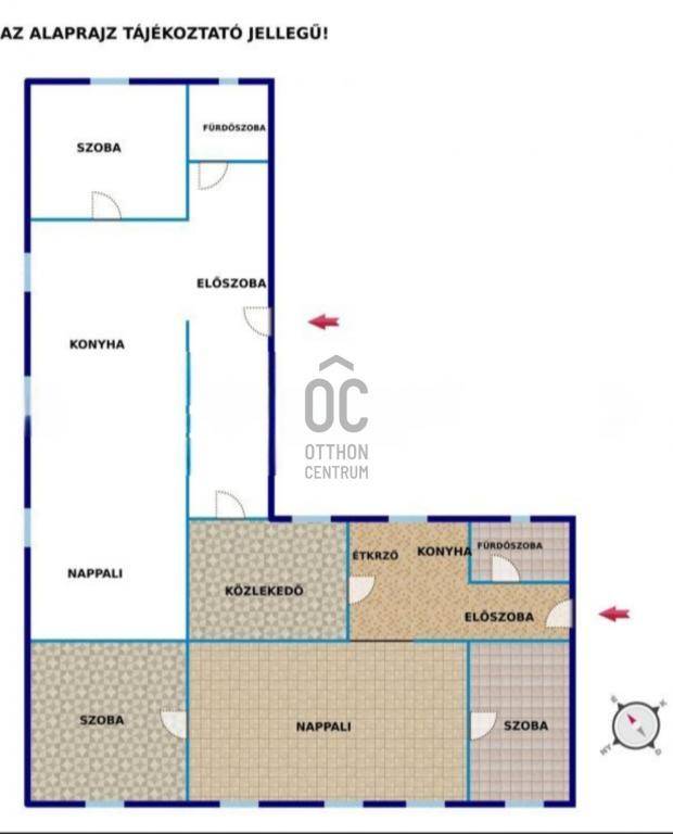 Helyiségek: 2 szoba, nappali, konyha + étkező, fürdőszoba, előszoba