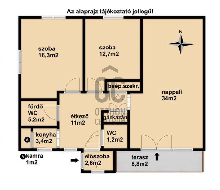 - A 6,8m2 nagyságú terasz déli tájolású.