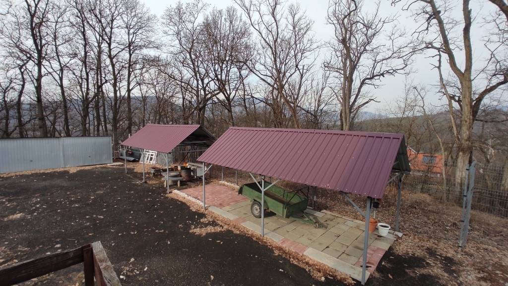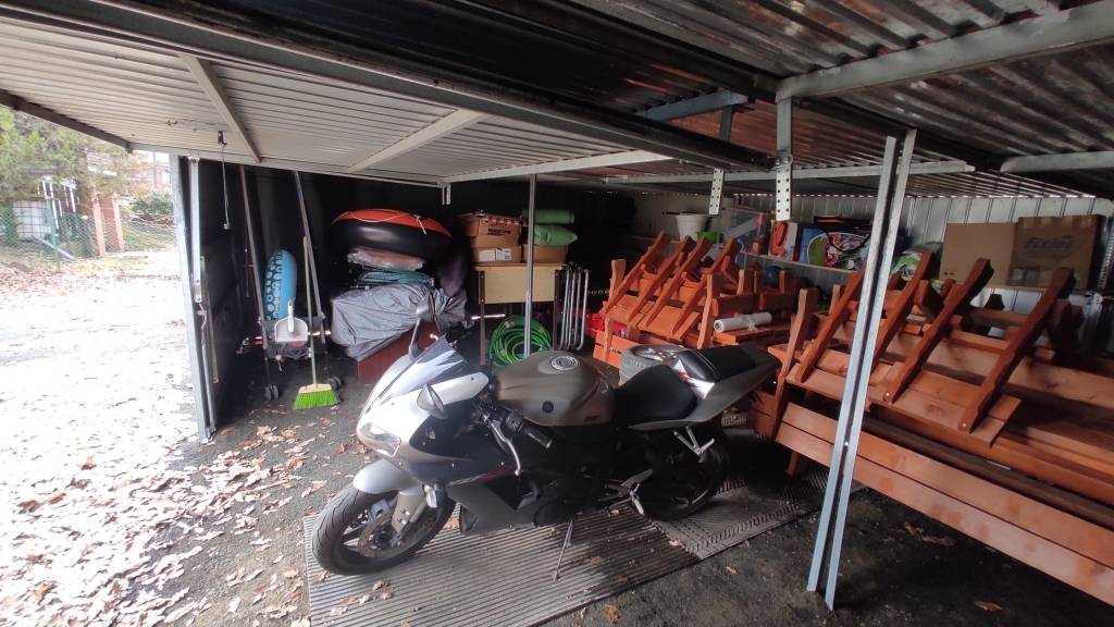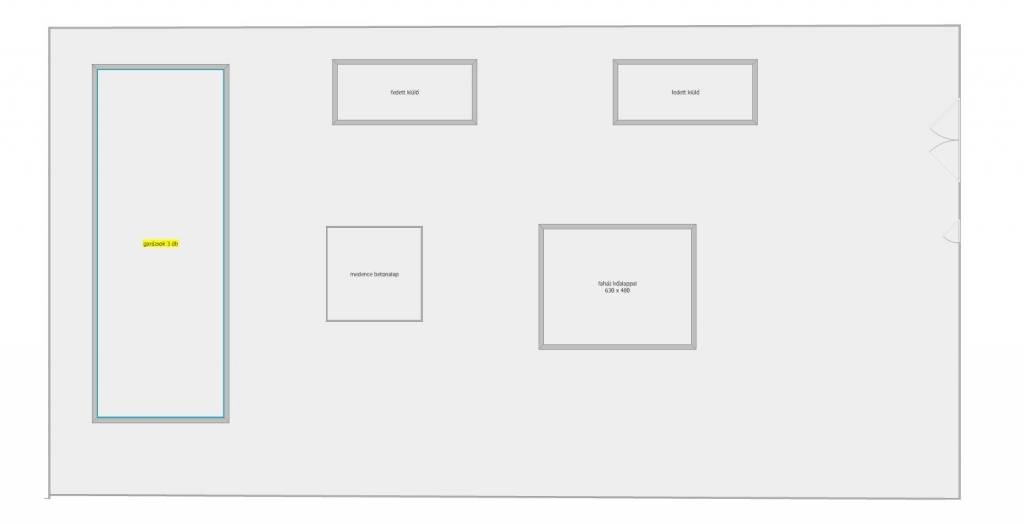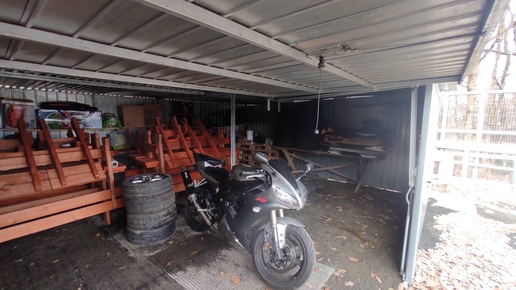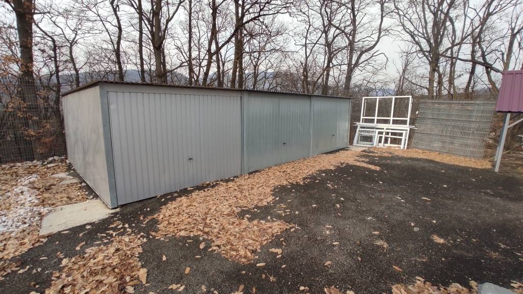 A telken 3 db különálló új fémgarázs, ízlésesen kialakított kiülők, szalonnasütő, kis sziklakert és medence beton alap is található.