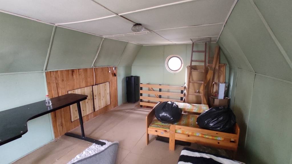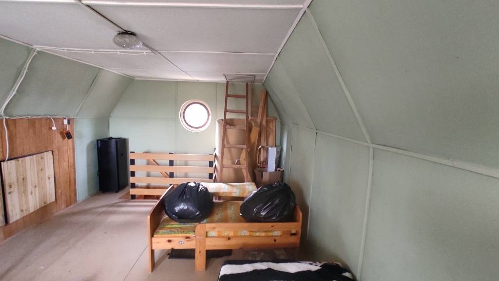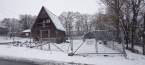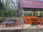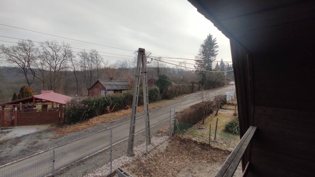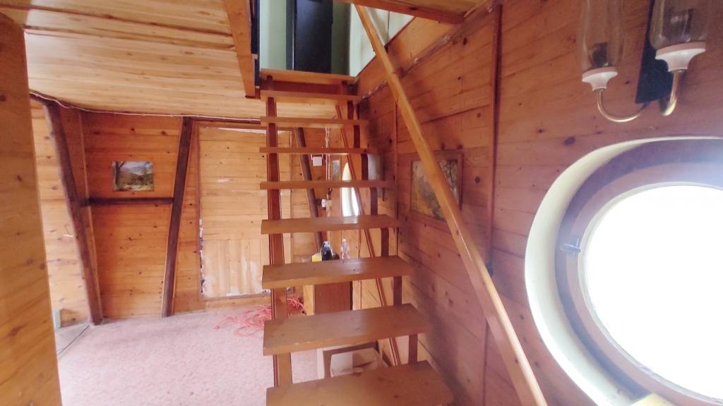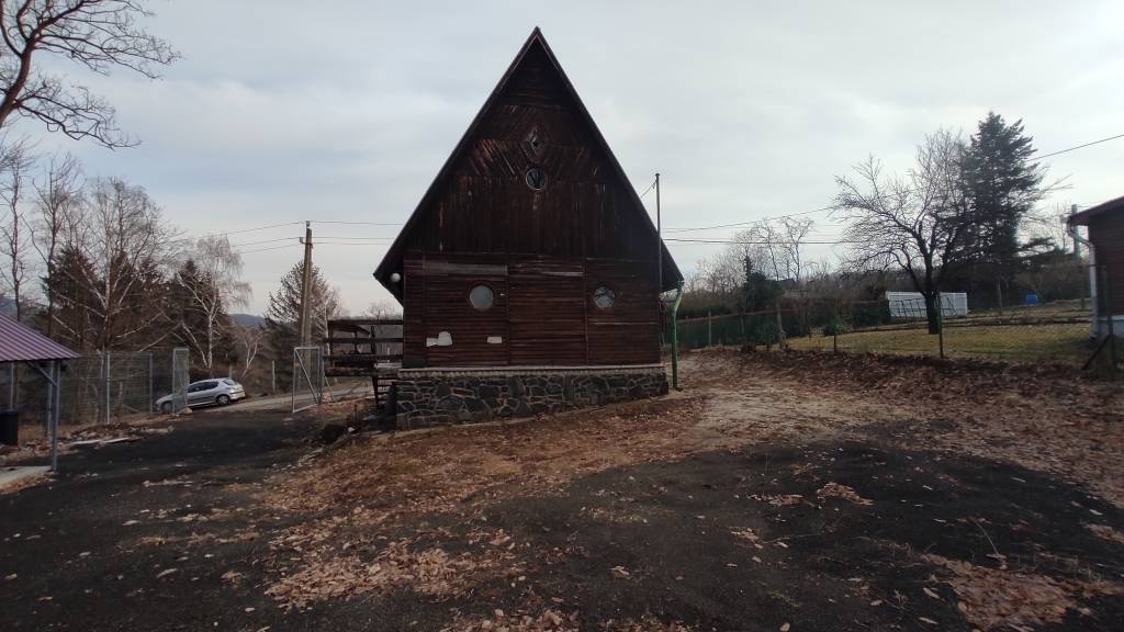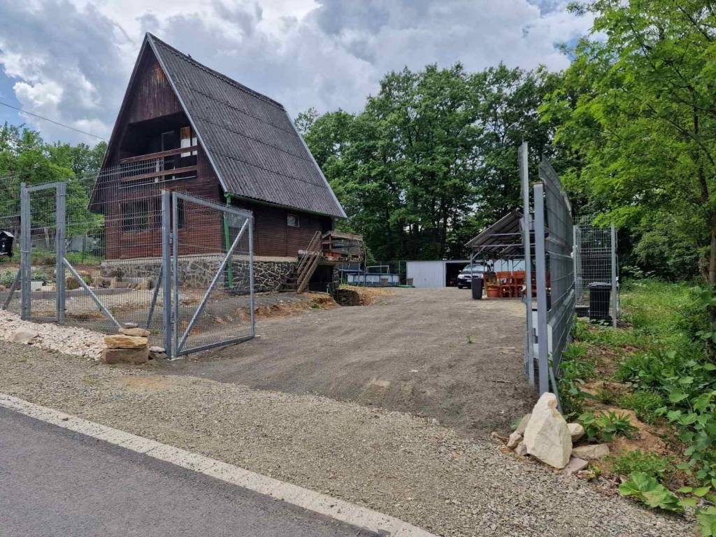 Az ingatlanon egy kő alapzatú, három plusz egy szintes, felújítandó erkélyes faház -többek közt-fürdőszobával és garázzsal, további három darab mobil garázs+ két fedett pihenőhely található.