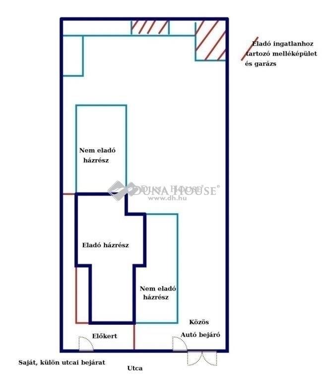 Saját, elkerített utcafronti bejáratA telek 540 nm, melyen három házrész helyezkedik el az 1970-es évek óta. Az eladó házrész a telek bal oldalán, utcafronton található, a másik két ingatlan a telek belsejében kapott helyet.Műszaki állapot:10 éven belül teljes tetőkorszerűsítés.Hőszigetelt műanyag nyílászárók,Vaillant gázkazán fűtés120 literes villanybojler melegvíz ellátás.