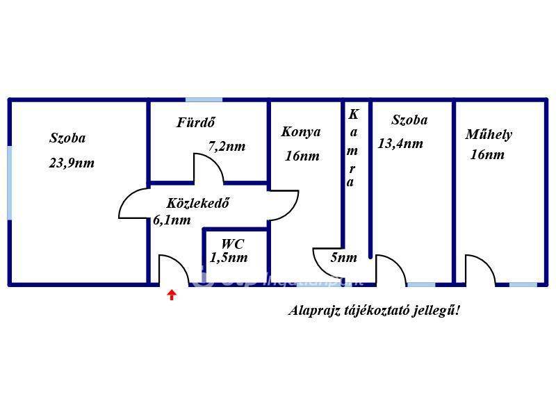 Az ingatlan ideális választás azok számára, akik saját ízlésük szerint szeretnék kialakítani otthonukat, hiszen szerkezetileg stabil, de felújítást igényel. A házba belépve egy közlekedőből nyílik a különálló mellékhelyiség, majd balra egy 23,9 m-es, utcafronti szoba található.