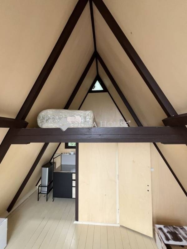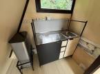 A kisebb, egyszintes házban galériás háló került kialakításra, emellett egy konyha, egy apró nappali és egy kis mosdó is helyet kapott, minden adott egy kellemes hétvégi pihenéshez.