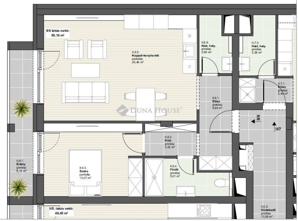 - szaniterek, meleg- és hidegburkolatok, valamint beltéri ajtók még választhatók