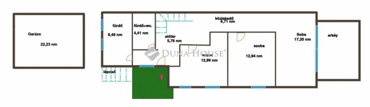 A parkolást önálló garázs és udvari kocsibeálló biztosítja.