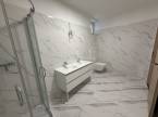-fürdőszoba zuhanyzóval, dupla mosdóval és WC-vel