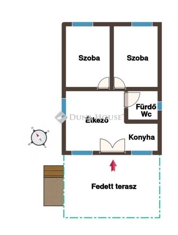 Az ingatlanban 2 szoba, konyha, étkező fürdőszoba wc-vel kapott helyet.