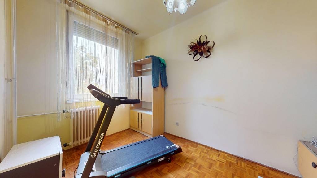 A keleti fekvésű lakás nyáron is kellemesen hűvös, köszönhetően a ház előtt álló nagy, árnyékot adó fáknak.