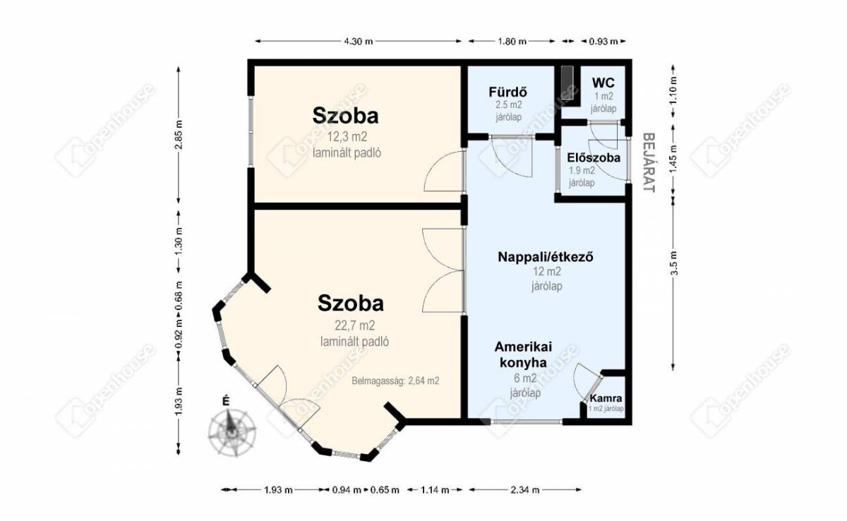 - a belmagasság 2,64 m