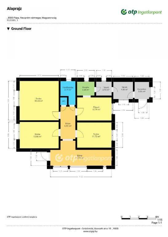 ELADÓ KEDVEZŐ ÁRON FELÚJITANDÓ CSALÁDIHÁZ PÁPÁN! Eladásra kínálok Veszprém vármegyében, Pápán egy felújitandó, tégla falazatú, 3 szobás, 96,9 m2-es kellemes hangulatú, családi házat, 320 m2-es telken. Az ingatlan világos, praktikus elrendezésű, minden helyisége tágas. Elrendezés szerint kettő teljes értékű, utcára néző, külön bejáratú, napfényes szobából, 1 udvarra néző félszobából, étkezőből és konyhából, fürdőszobából és WC-ből, közlekedőből, kazánházból, zárt teraszból áll. A telken találhatók tároló helységek, melléképületek, amelyek tárolásra, műhelynek vagy akár garázsnak is alkalmasak lehetnek. Az udvar méreténél fogva könnyen kezelhető, alkalmas kikapcsolódásra. Téli hideg napokon a ház melegéről többféle fűtésrendszer gondoskodik, gázkazán, valamint vegyes tüzelésű kazán, radiátoros hőleadással. A meleg vizet villanybojler szolgáltatja. az ingatlanban ipari árammal is ellátott. A ház állapota szerkezetileg és statikailag kiváló. Az ingatlan előnyei közé tartozik a magas lábazat, az erős tégla falazat, a betongerendás szerkezet, a betonkoszorús kialakítás és a cserépfedés. Az ingatlan alkalmas emelet ráépítésére, így akár bővítésre is van lehetőség. A padlástér ugyancsak gondozott. A eredeti nyílászárók cserélve lettek, hőszigetelt, fa, redőnnyel ellátott nyillászárókra. A szobák parketta burkolatúak, a többi helyiség járólap borítású. A ház elhelyezkedése szempontjából meglehetősen jó adottságokkal rendelkezik,közel a belváros, közelben van buszmegálló, bolt, gyógyszertár, iskola, óvoda, orvosi rendelő és bevásárlóközpont is könyen elérhető. Az ingatlan ideális lehetőség átalakításra, praktikus elrendezése számos lehetőséget kínál a jövőbeni tulajdonosának. Ajánlom mindazon érdeklődők figyelmébe, akik barátságos, biztonságos, családias környezetben keresnek otthont. Az OTP Ingatlanpont teljes körű ügyintézéssel áll az eladók és a vevők rendelkezésére. A kínálatunkból választott ingatlan finanszírozásához kedvezményes hitelkonstrukciót kínálunk. Otthon Start Hitelprogram. Az adásvételi szerződés megkötéséhez igény szerint megbízható ügyvédi közreműködést biztosítunk, és segítséget nyújtunk az adásvételhez kapcsolódó ügyek intézéséhez is. Az ingatlanról készült alaprajz, illetve fényképfelvételek az OTP Ingatlanpont szellemi tulajdonát képezik. Amennyiben felkeltette érdeklődését az általam kínált ingatlan, keressen bizalommal!