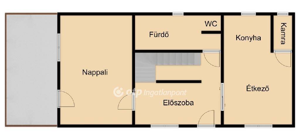 -Földszinten: tágas előszoba, étkezős konyha és kamra, fürdőszoba + WC egy légtérben (mégis szeparálva), tágas nappali és terasz
