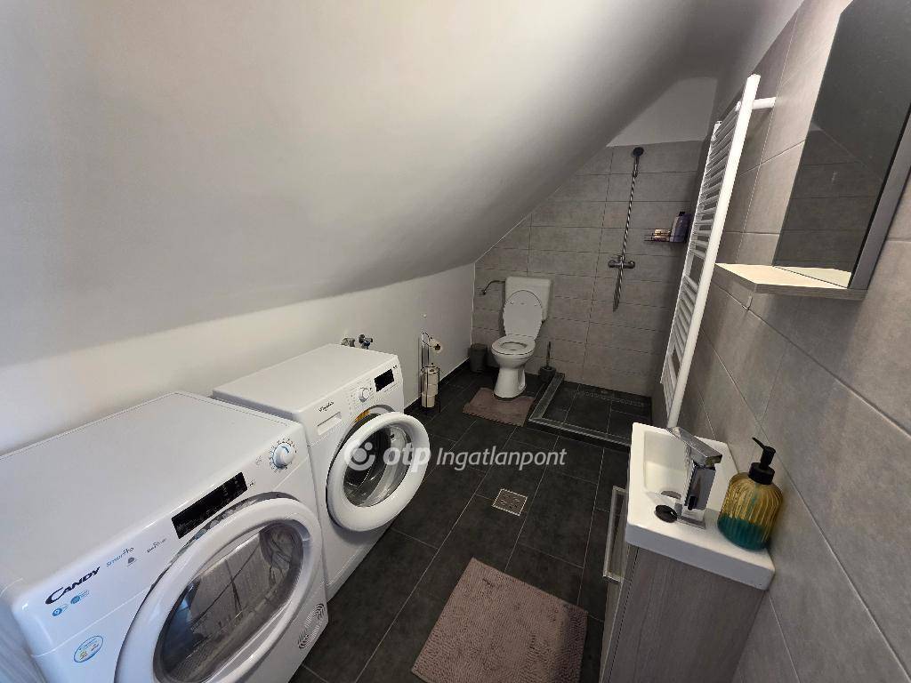 A házhoz lemezgarázs saját beállóhellyel is tartozik. A hátsó, intim elhelyezkedés miatt a telek csendes és védett, ideális kisgyermekes családoknak vagy nyugodt életre vágyóknak.