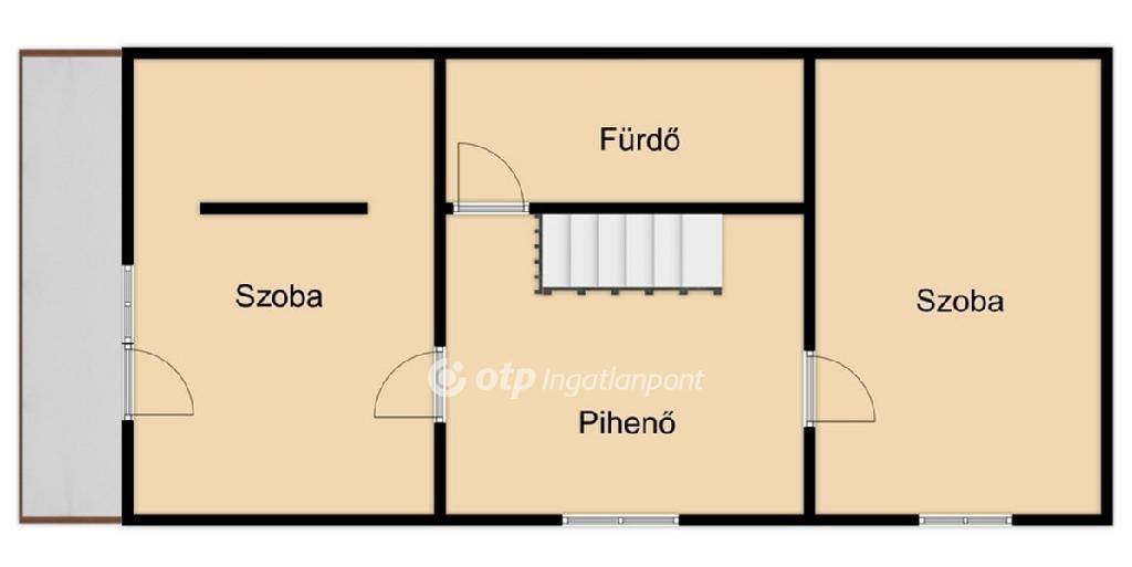 -Emeleten: közlekedő, fürdő + WC, 2 hálószoba , loggia