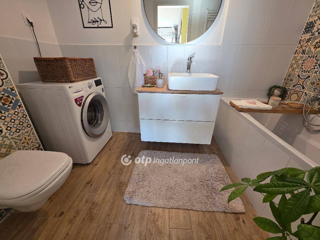 -Fürdő: minőségi burkolatok, beépített WC, padlófűtés, automata szellőző