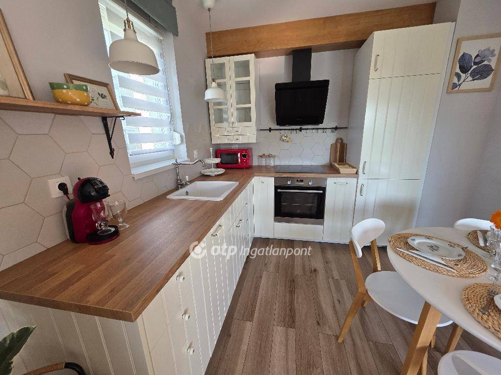 -Konyha: IKEA konyhabútor, beépített gépekkel (hűtő, sütő, főzőlap, mosogatógép, páraelszívó)