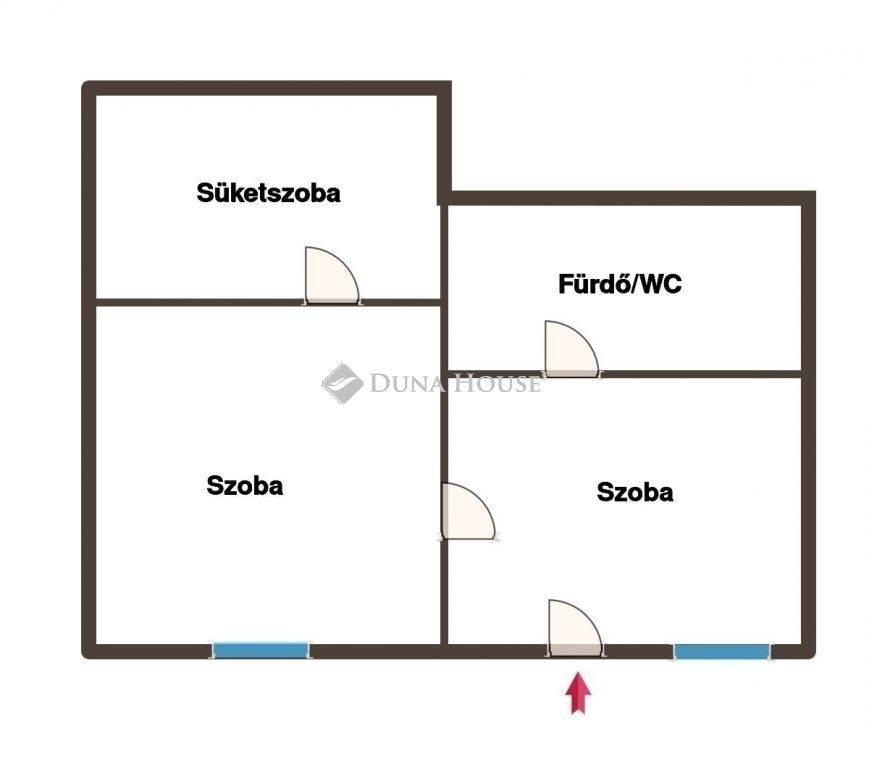 A nettó 137 nm-es ház rendkívül jó beosztású, egy hatalmas nappali szobából, tágas étkezős konyhából, három hálószobából, két fürdő /Wc helyiségből, egy háztartási helyiségből, valamint egy gardrób szekrénnyel ellátott előszobából áll. A közelmúltban a ház kívül-belül megújult, szigetelést kapott és kívül-belül új színezést.