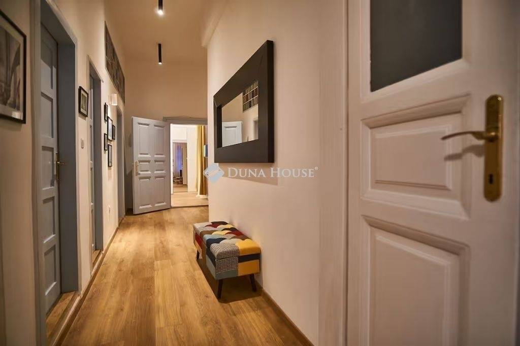 A Dob utca, Deák térhez közeli részén, szuper lokációjú, 100 nm-es lakás eladó. A 2. emeleten található ingatlan fűtése gáz-cirkó rendszerű, radiátoros hőleadással. A lakásba klíma is beszerelésre került.Rendkívül jó beosztásának köszönhetően, sokak álma egy ilyen lakás. Központi részén egy közel 45 nm-es amerikai nappalis konyha áll, ezen kívül 2 külön bejáratú, nagyobb méretű (19 és 15 nm) szoba kapott helyet benne háztartási helyiségén, külön toalettjén, fürdőszobáján (melyben egy másik toalett is megtalálható) és tágas folyosóján kívül. A 2017-18-ban teljeskörűen felújított ingatlan egy festés után akár költözhető. Teher nincs rajta. Közösköltsége 30.000 ft melybe már a vízfogyasztás is benne foglaltatik.Ajánlom diákoknak, kis családoknak vagy akár befektetőknek rendkívül jó elhelyezkedése és beosztása miatt.Bútorai megbeszélés tárgyát képezik. Kérdés esetén keressen, akár kis videót is tudok küldeni a lakásról.