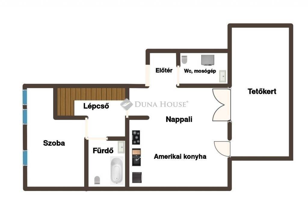 108,9 M, 65 m2, 3 szoba + tetőterasz