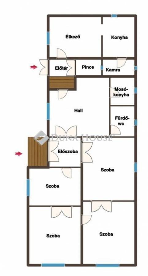2 kisebb ablak és a két bejárati ajtó fából készült, illetve fém szerkezetű, jó állapotú! A belső nyílászárók szintén fából készültek, a szobákon 2 szárnyúak.
