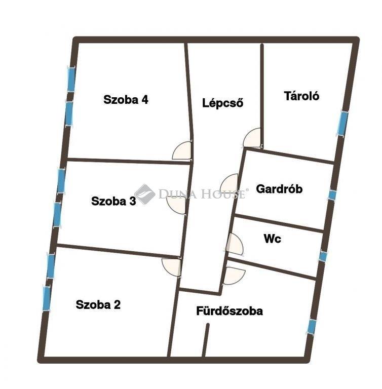A ház földszintje egy teraszkapcsolatos konyhával, étkezővel és nappalival egybekötött térrel, ezen kívül egy szobával, melyből egy fürdőszoba nyílik, mellettük pedig garázs, előszoba és Wc található. Az emeleti rész összesen 3 szobát és 2 félszobát foglal magába, amelyet tároló vagy gardróbszobaként is lehet használni, ezenfelül egy fürdőszoba és egy külön Wc helyezkedik el itt. A tetőtér kialakítása így tökéletes választássá teszi a több generációs együttélésre vagy vendégek fogadására is.