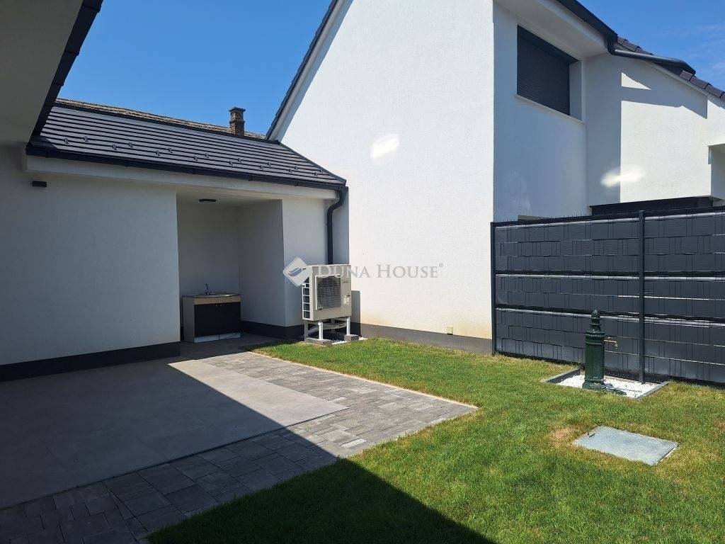 A házat egy parkosított udvar veszi körül, ahol egy automata öntözőrendszer is hozzájárul a növényzet és a kert gondozásának megkönnyítéséhez. A kellemes környezetben és modern technológiával épült ingatlan nem csak egy otthon, hanem egy befektetés is a jövőbe.