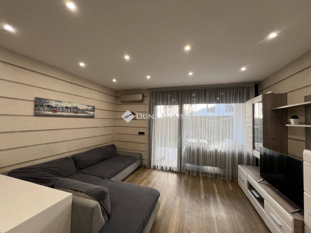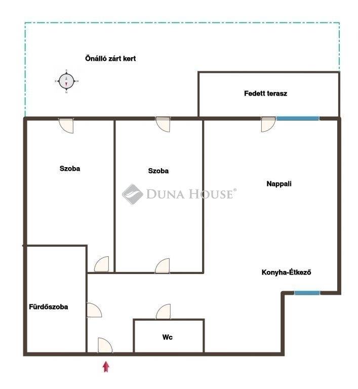 - nappali + amerikai konyha, 2 szoba, külön fürdőszoba, wc, közlekedő, előszoba és fedett terasz helyiségekből áll, amelyhez egy önálló, 82 nm-es zárt műfüves kert is tartozik, amely ideális pihenésre, grillezésre, gyerekes családoknak vagy kisállat tartóknak