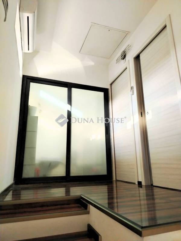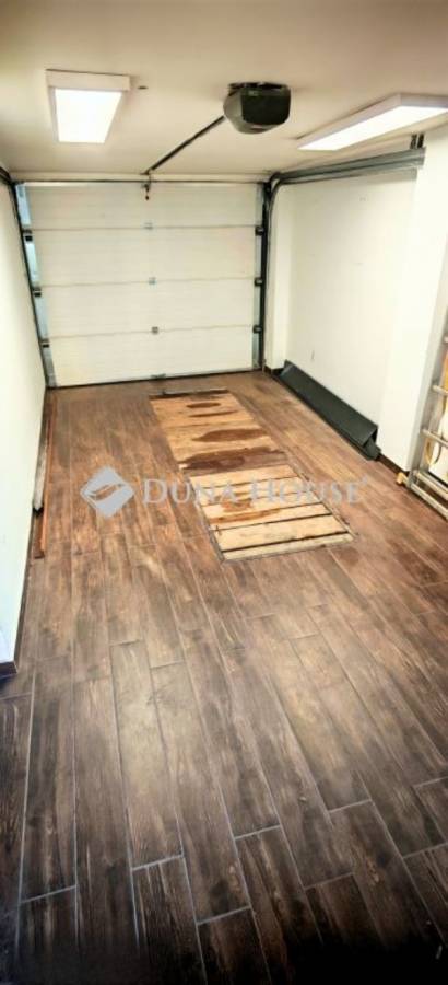 A 36 nm-es dupla garázs egyik felére elektromos kapu került felszerelésre (szintén nyitható és zárható telefonról), míg a másik oldalon a kapu gipszkartonnal lett ideiglenesen lezárva, így egyszerűen visszaalakítható, ha mindkét beálló használatára igény volna.