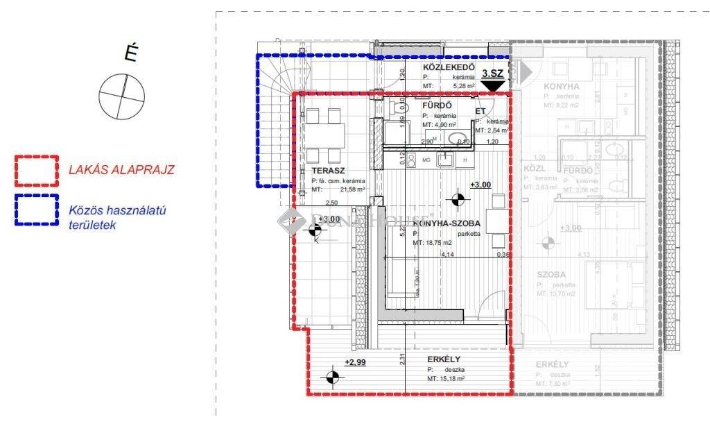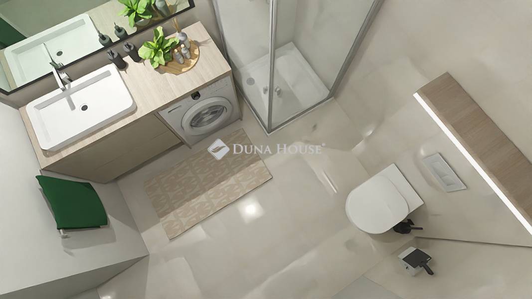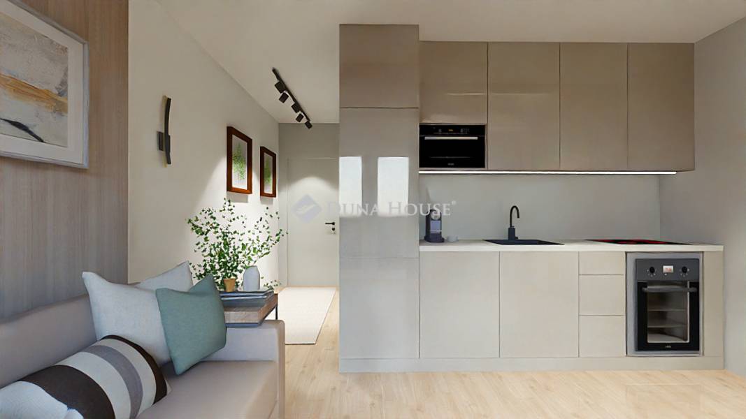 A projekt 1 emeletén eladó egy 26 nm-es cuki kis garzon lakás, 15 nm-es terasszal, + 39 nm saját használatú kerttel.